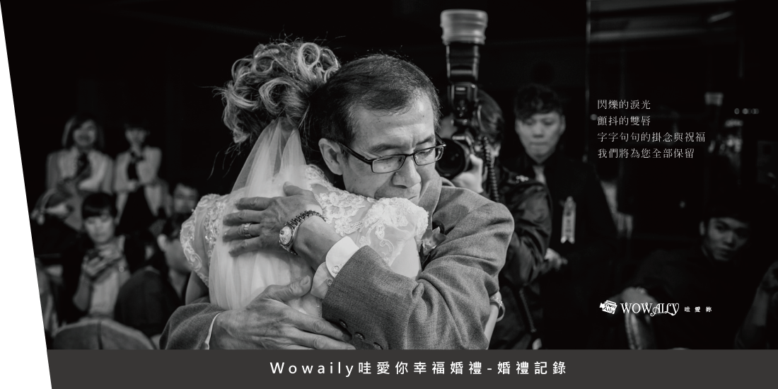 浪漫的婚禮,新郎新娘接受眾人滿滿祝福,許多人會選擇將這般美好的時刻記錄下來,婚禮記錄的工作油然而生。Wowaily 從業多年,專業的攝影/錄影服務,陪新人一步步的從早忙到晚,攝影團隊累積多年的經驗,只為了捕捉那快速卻關鍵的一瞬,舉凡女方家長送走女兒的閃淚,父親也顧不上威嚴的擁抱,兒女的感激之情......我們一刻也不想錯過,忠實至上的為您記錄。